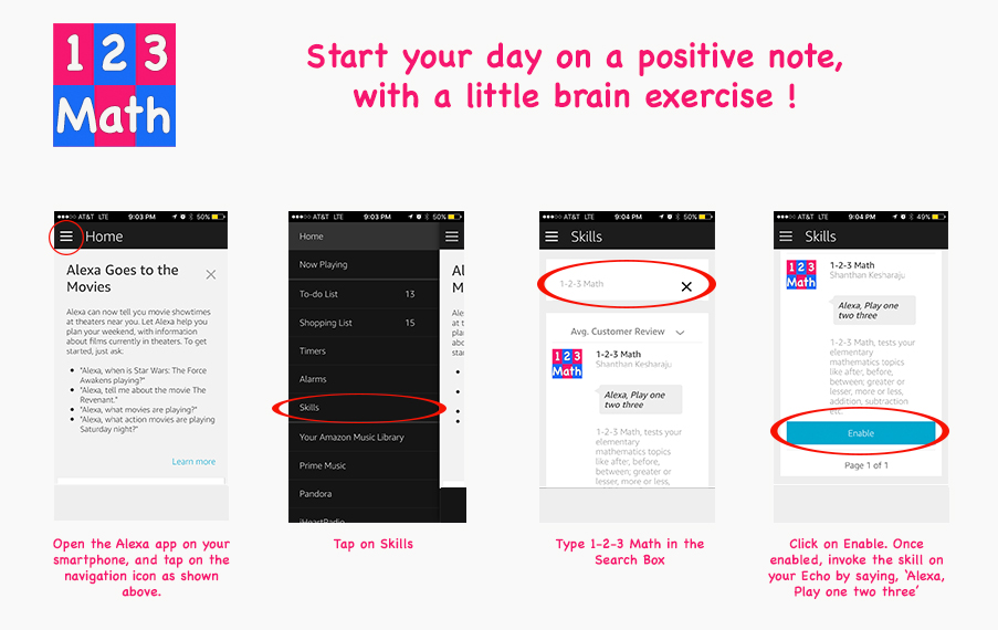 Once enabled, the 1-2-3 Math skill can be invoked by saying “Alexa, Play one two three” or “Alexa, Open one two three”. My son uses the skill for at the least 10 minutes daily and he loves it.